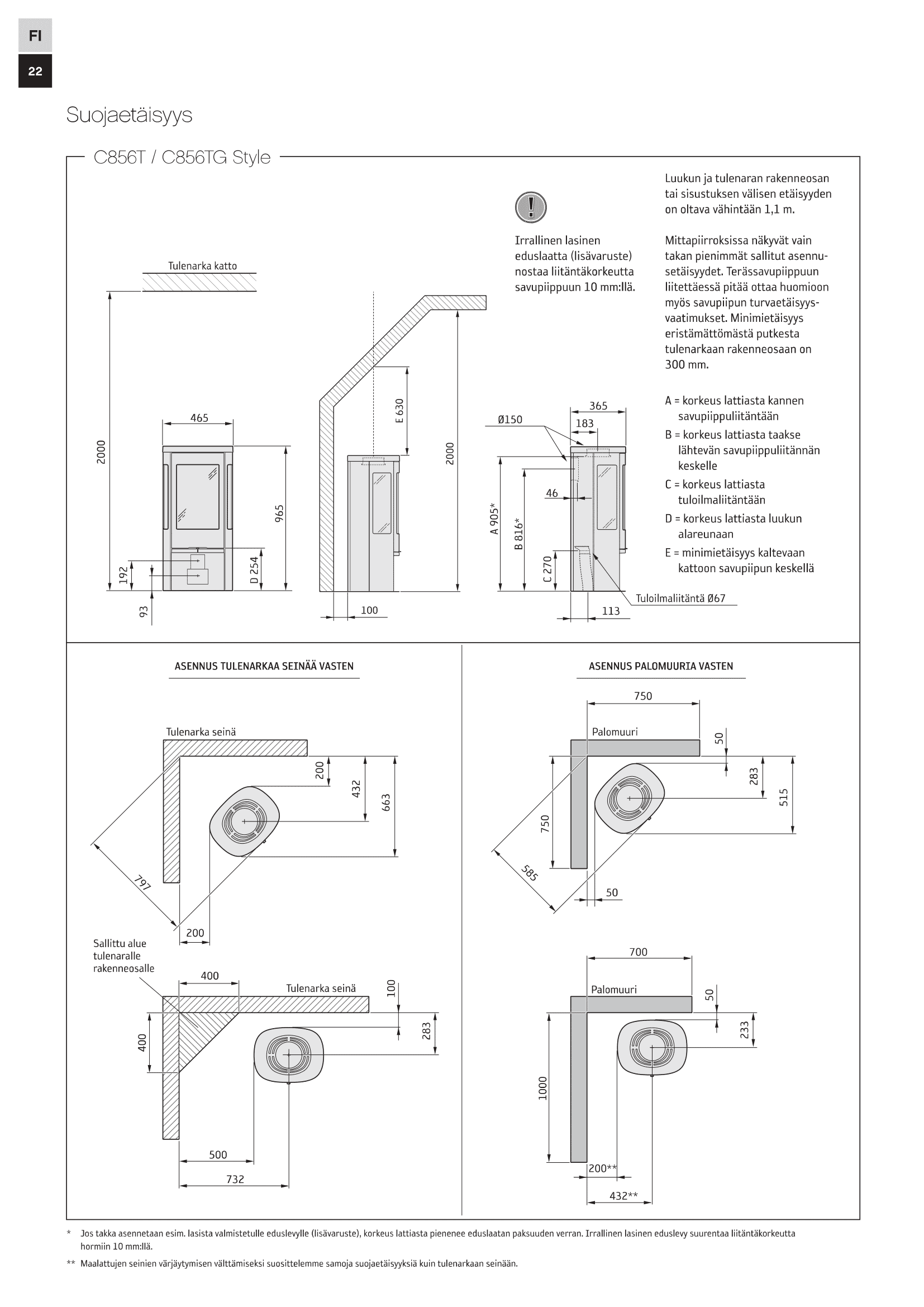 Contura 856T Style sopii parhaiten suoralle seinälle asennettavaksi suurten sivulasien ja niiden luoman tulinäkyvyyden ansiosta.