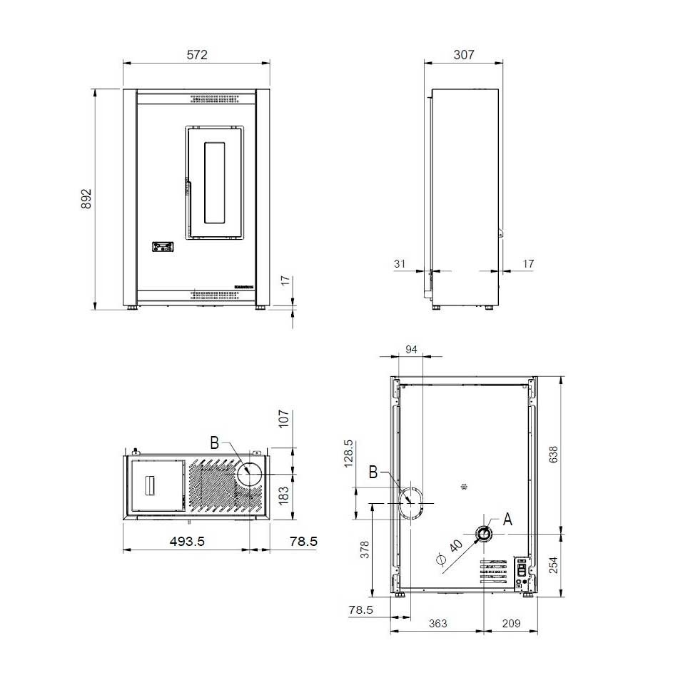 Valmistajan alkuperäiset sivut: https://www.lanordica-extraflame.com/en/products/pellet-stoves/luisella