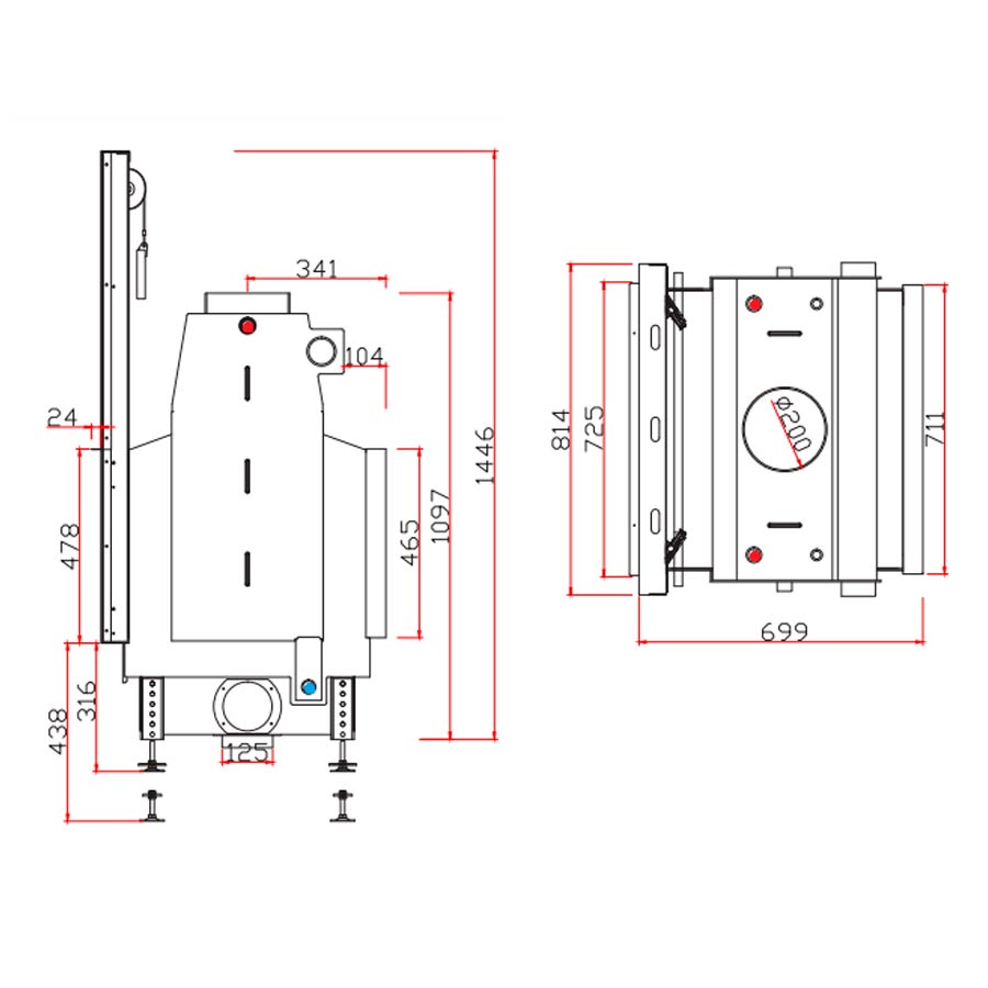 Vakiona säätöjalat, ulkoinen paloilmanottoliitäntäpaikka 125 mm (vasemmalta, oikealta tai takaa).