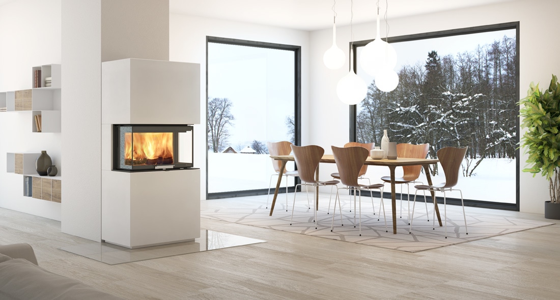 Takan palamisilmansäädöllä takan tehoa ja palamisen nopeutta voidaan säätää hienosti. Parhaimmillaan tämä takka on suoran seinän asennuksessa, jossa edessä ja molemmilla sivuilla avautuu hieno näkymä takkatulelle.