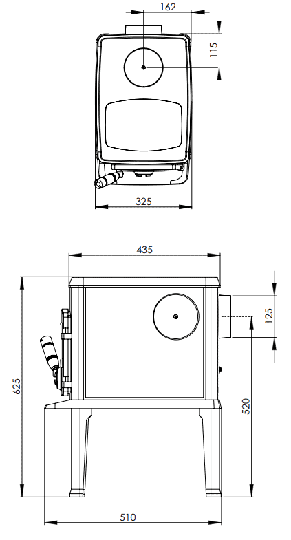 Nordpeis Orion on pieni ja edullinen valurautakamiina, jonka päällä on keittolevy.