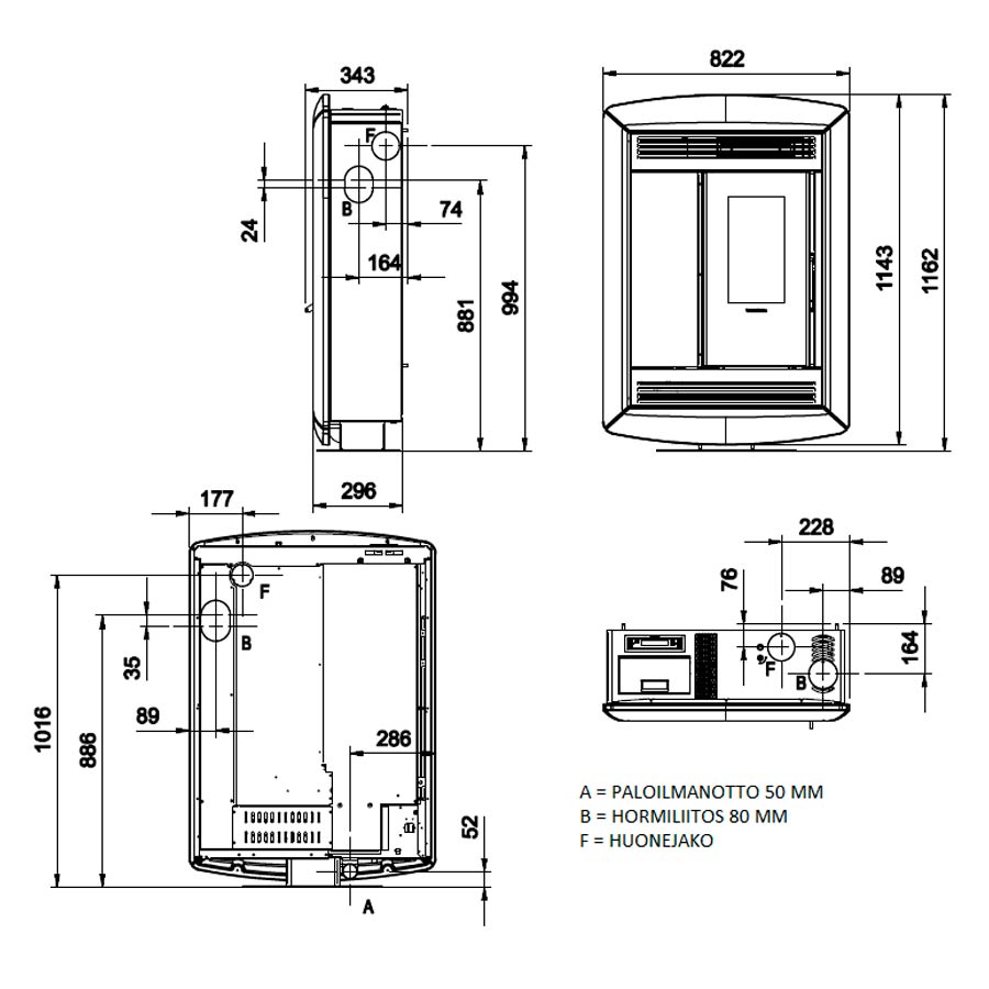 Mitat (L x K x S): 822 x 1162 x 343 mm