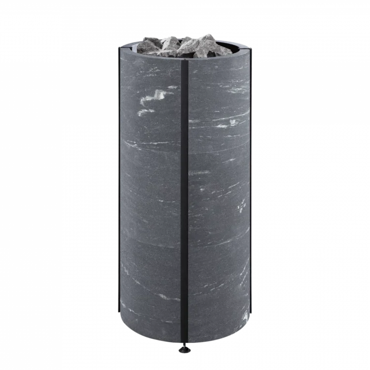 Tulikiven pyöreässä Naava-kiukaassa yhdistyvät tinkimätön muotoilu, kotimainen vuolukivi ja huipputekniikka.