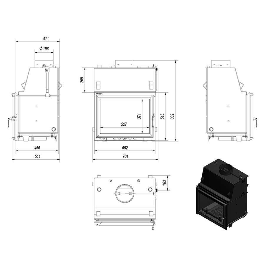 Sopii saneerauskohteisiin joissa painovoimainen ilmanvaihto (Luukun toisioilman syöttö on huoneilmasta). Takka lämmittää hyvin maksimissaan 500 l varaajaa tai on avustavana lämmityslaitteena isommassa järjestelmässä. Suositus alle 100 m² kohteet joissa kohtuullinen rakennuksen eristystaso. Ensioilma otetaan arinoiden alapuolelta, ja toisioilma ohjataan huonetilasta lasiluukun yläpuolella olevista toisioilma-aukoista, jolla lasille saadaan ns ”ilmahuuhtelu”. Takka voidaan kytkeä ulkoiseen paloilmanottoon jolloin arinailma imetään ulkoa. Paloilmasarjaan suositellaan liitettäväksi sulkuventtiili, koska takan oma ilmansäätö ei sulje raitisilmaa.